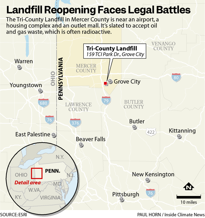 The group had found a map of landfills that accept oil and gas waste in Pennsylvania, published by investigative journalists at the Public Herald. One of the sites was Seneca Landfill, owned by the same company, Vogel Holding, that owns the landfill in Grove City.