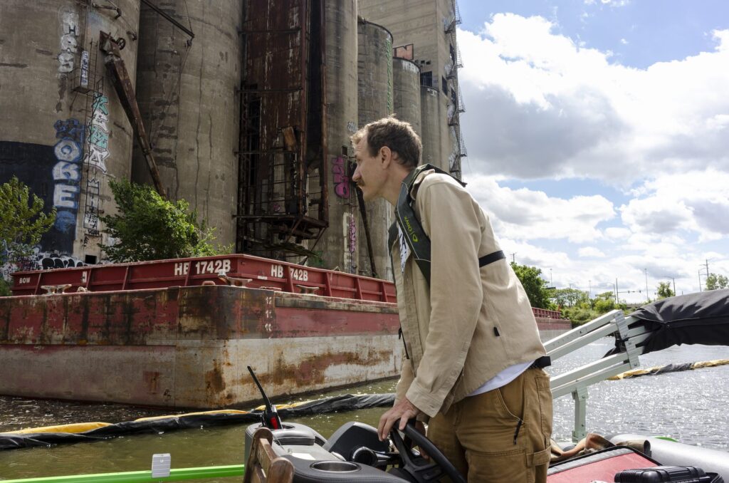 A barge was placed on the river up against the edge of the site where the silos sit, but Eakin thinks debris can easily fall into the cracks between the barge and the site, and that the barge isn’t big enough to capture all the debris that could fall.