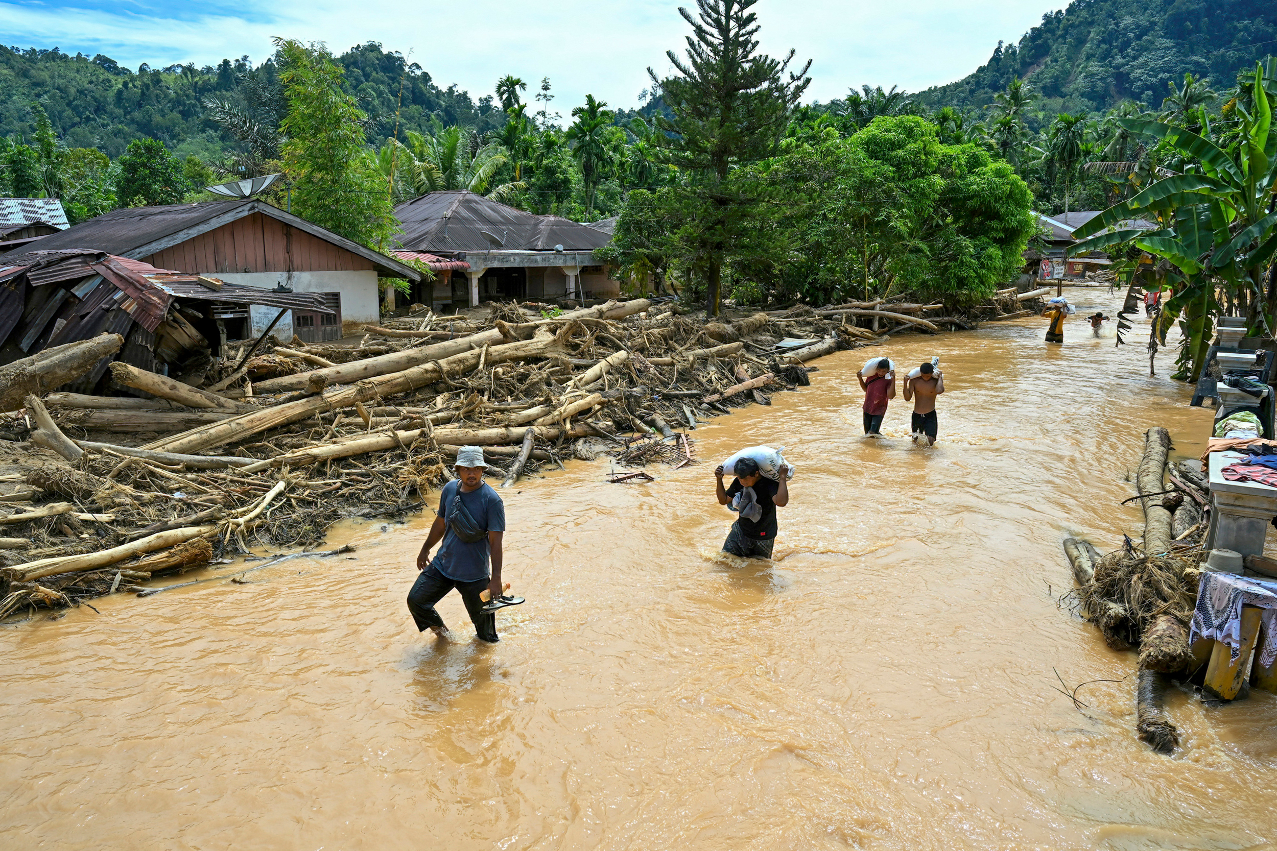Yet scientists, activists and government officials say the devastation was likely exacerbated by widespread deforestation, which stripped the land of its capacity to absorb rainfall and retain soil. From 2001 to 2024, North Sumatra province lost 28 percent of its tree cover, some 6,200 square miles in all, according to Global Forest Watch. Images across the area show massive piles of logs jamming rivers after the floods, evidence of clearing upstream.