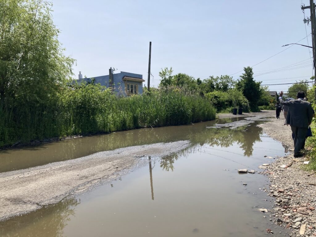 A flooded street in a low-lying area on the border of Brooklyn and Queens Credit: Lauren Dalban/Inside Climate News