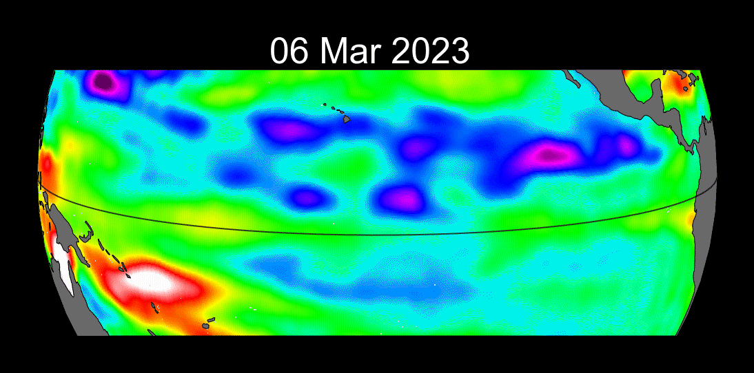 Hot El Niño cycles in the tropical Pacific Ocean release so much energy, as heat and moisture, to the atmosphere, that it affects rainfall and drought patterns halfway around the world. Credit: NASA/JPL