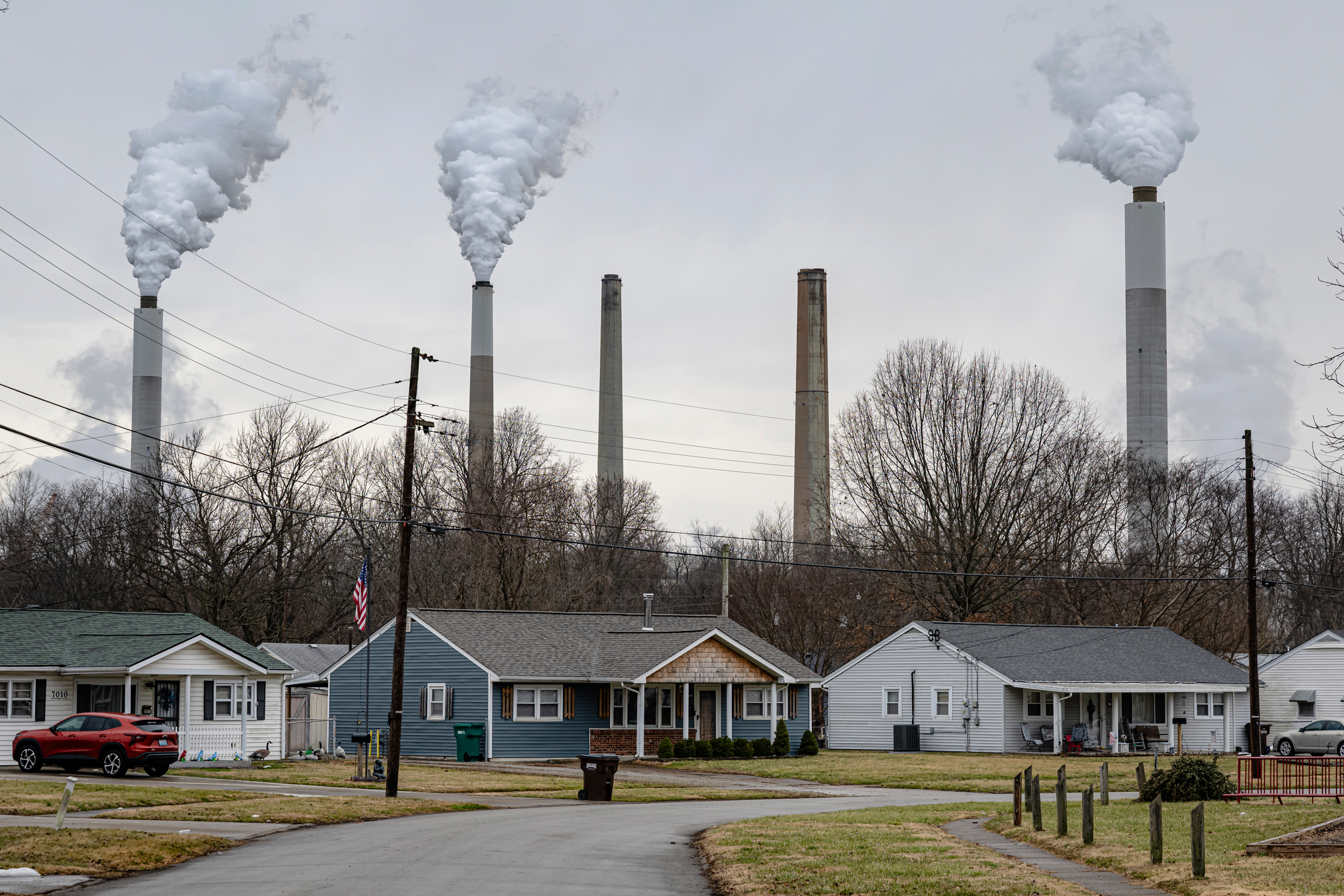A view of the coal-fired Mill Creek Generating Station on Feb. 14 from the Valley Village neighborhood in Louisville, Ky. Credit: Jon Cherry/Getty Images